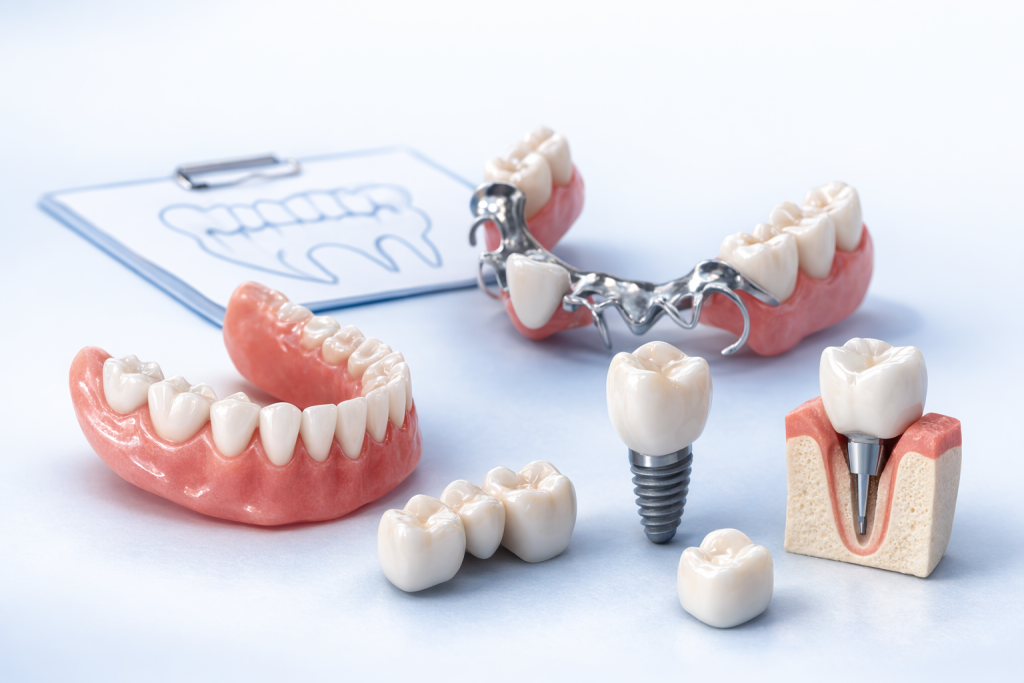 - protezy akrylowe, elastyczne oraz szkieletowe